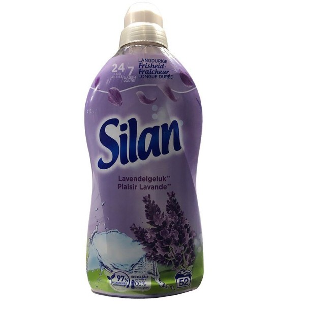 Ce luxe d'assouplissant Silan Lavender Happiness ! Il rend vos vêtements doux et soyeux, facilitant ainsi le repassage. Son parfum de lavande délicieux persiste jusqu'à 7 jours, grâce à une technologie de fraîcheur . Les ingrédients biodégradables représentent 97 % du produit, tandis que la bouteille en plastique est entièrement recyclable. Une bouteille contient 1144 ml, ce qui équivaut à environ 52 lavages. Offrez à votre linge une touche parfumée avec Silan !