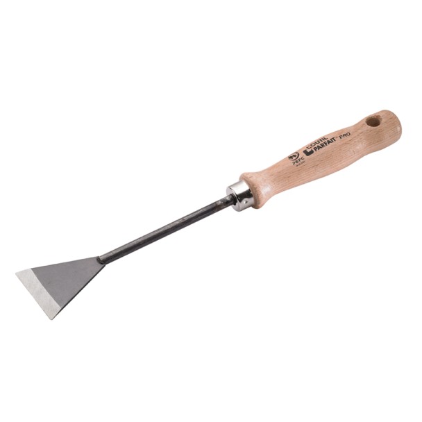 Le couteau à brûler est équipé d’une lame en acier trempé, vernie et biseautée. Il possède une virole nickelée, une tige de 8 mm de diamètre, ainsi qu’un manche en bois de hêtre certifié PEFC.