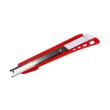Le cutter 9 mm est muni d’une lame sécable de 9 mm guidée par une glissière métallique. Il est conçu avec un corps en plastique robuste, un embout amovible pour casser la lame et un bouton anti-retour pour plus de sécurité.
