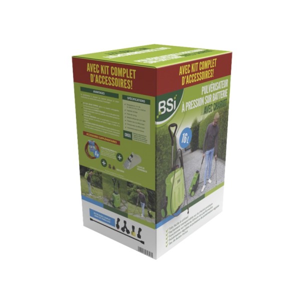 Ce pulvérisateur à pression à batterie avec chariot offre une combinaison pratique et conviviale de nombreux avantages. Sans avoir à pomper, vous pouvez bénéficier de la rechargeable batterie de ce dispositif, qui vous libère définitivement du besoin de pompage. Le chariot permettant un déplacement facile ou les bretelles confortables pour porter le pulvérisateur sur le dos, vos mains restent ainsi disponibles pendant l'arrosage. La pression est constante et réglable à la volée grâce à la poignée, ce qui garantit une efficacité optimale. La batterie lithium-ion amovible se charge rapidement via le chargeur inclus, connecté à la prise murale. Avec une batterie complètement chargée, vous pouvez utiliser le pulvérisateur 6 à 8 fois. Le pack de valeur comprend : un pulvérisateur à pression, une ligne de pulvérisation de 6 mètres, un capot de pulvérisation et une buse plate.